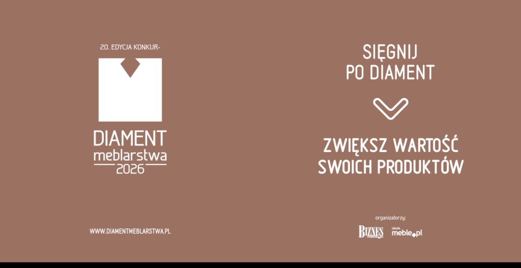 Rozpoczęła się jubileuszowa edycja znanego i cenionego w branży meblarskiej i sektorze wyposażenia wnętrz konkursu, który od 20 lat pozwala budować pozytywny wizerunek firm, jak również promować wartościowe produkty, wskazane przez szerokie grono ekspertów. Diament Meblarstwa 2026, podobnie jak poprzednie edycje, hołduje zasadzie, iż każdego roku na rynku pojawiają się meble, komponenty i akcesoria, na które warto zwrócić uwagę.